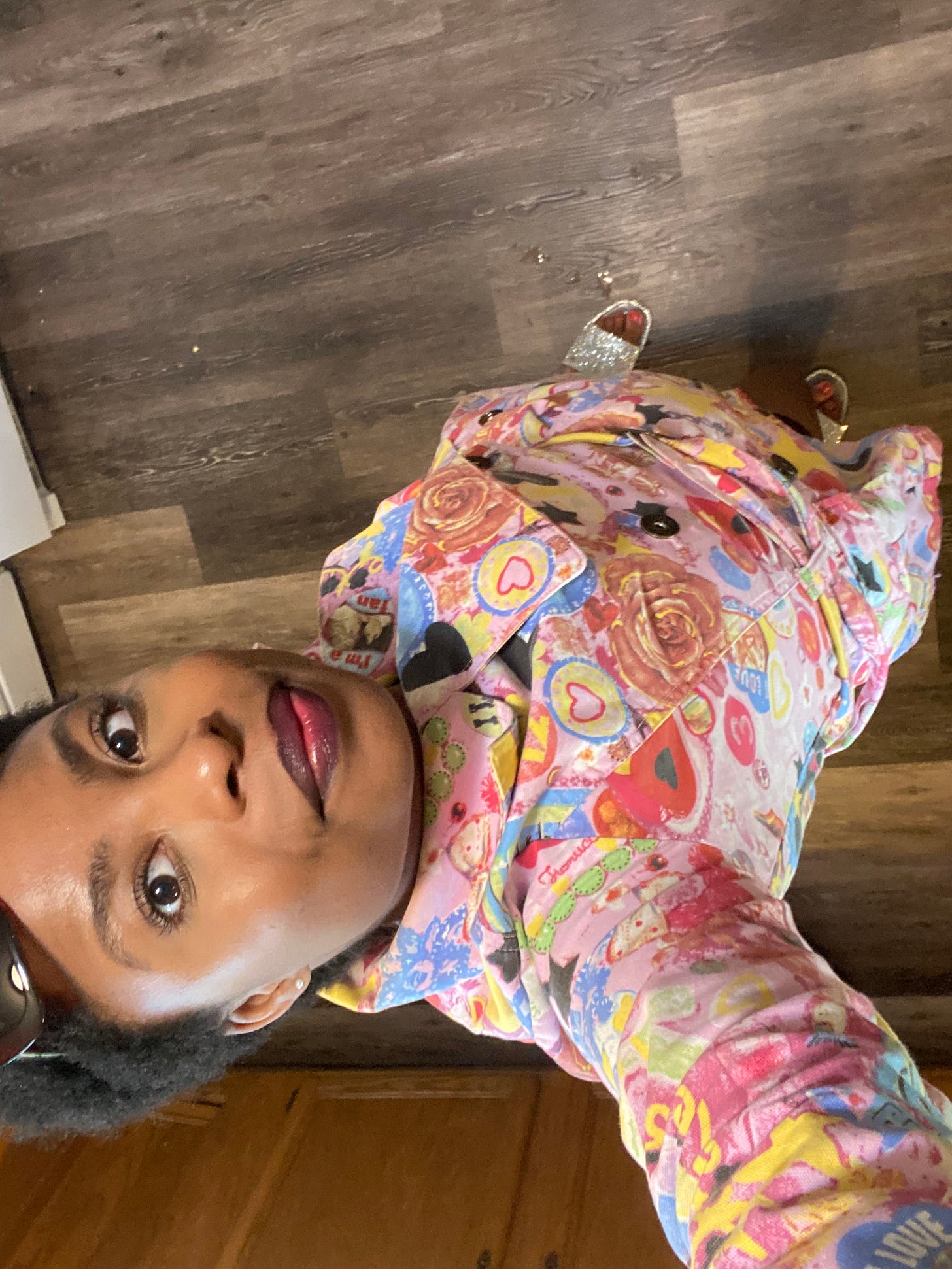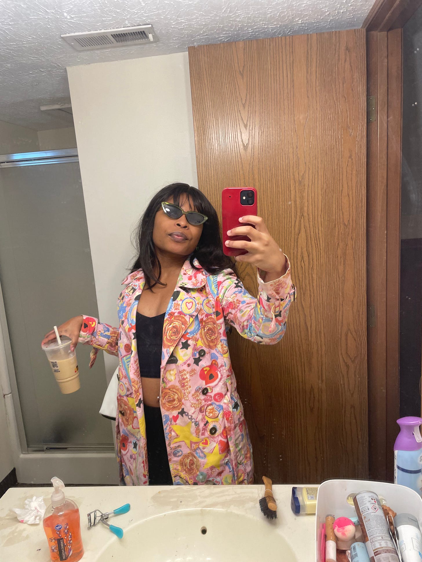 Outgrowing that coat devastated me. So, when I saw this pink trench coat, I knew I had to buy it. I mean, without the childhood memory, it would still be worth the buy. The print is insane, and I routinely find new details. It even says “celebrity” on it—so me!